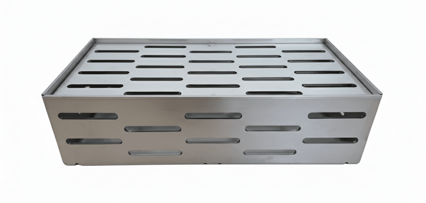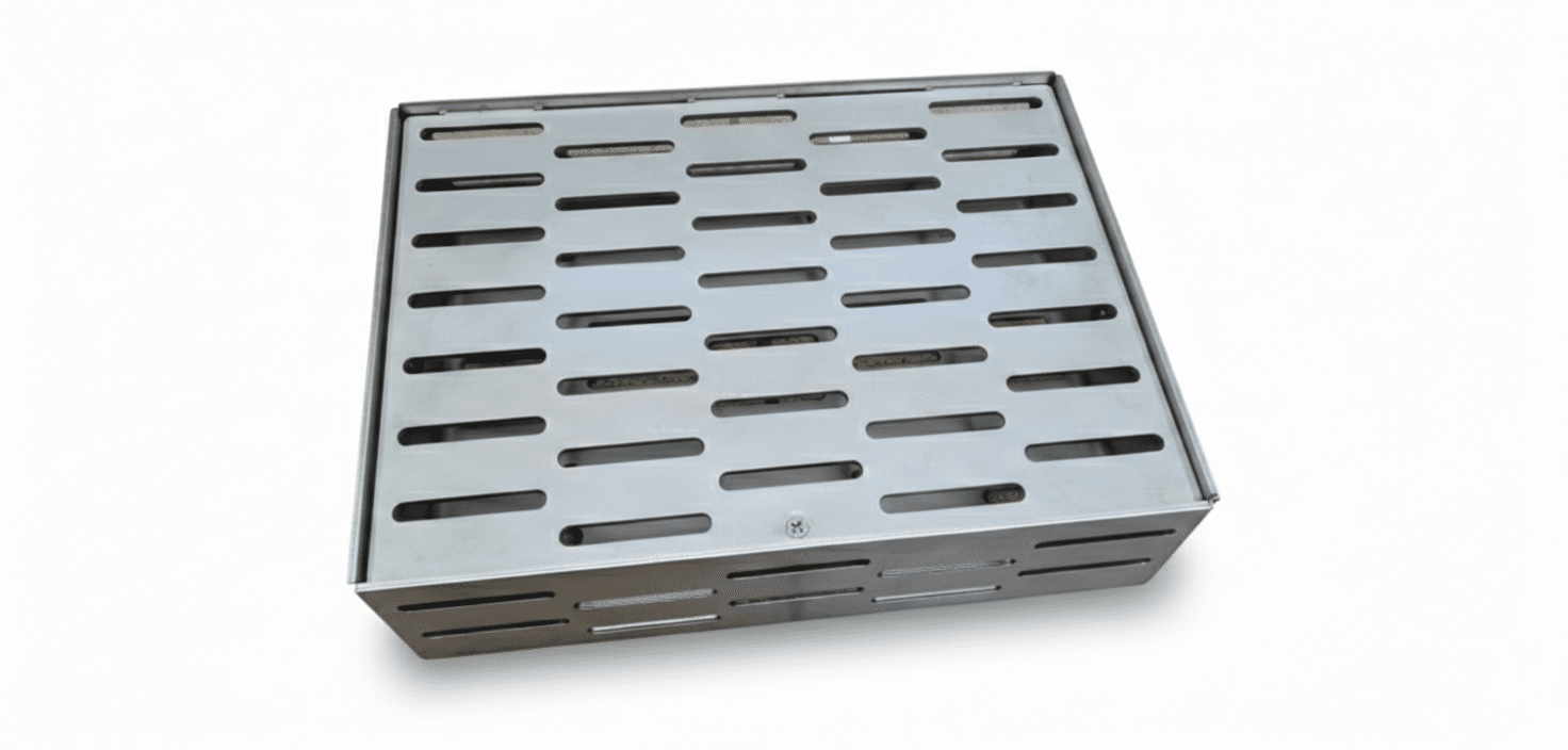 Chytrý perforovaný design: Podlouhlé otvory po celém obvodu umožňují volný přístup horkého vzduchu a kouře k masu. Vaše pokrmy tak získají to nejlepší z uzení a grilování zároveň.